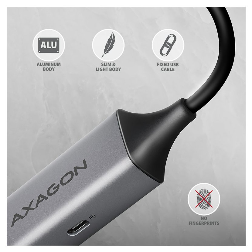 AXAGON ADE-TXPD - USB-C 3.2 Gen 1 - Gigabit Ethernet síťová karta, Asix AX88179, PD 100W, auto install