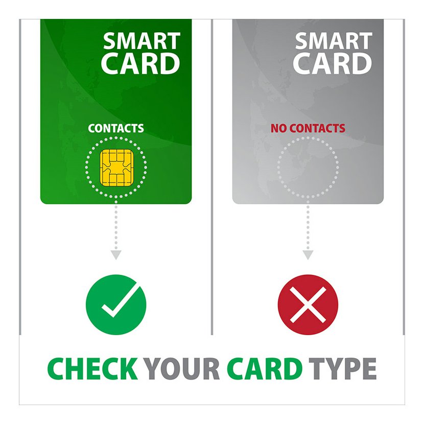 Pozn.: Čtečka podporuje pouze kontaktní karty, které mají na povrchu viditelné kontakty. Karta bez kontaktů je tedy RFID, a nelze ji ve čtečce použít.