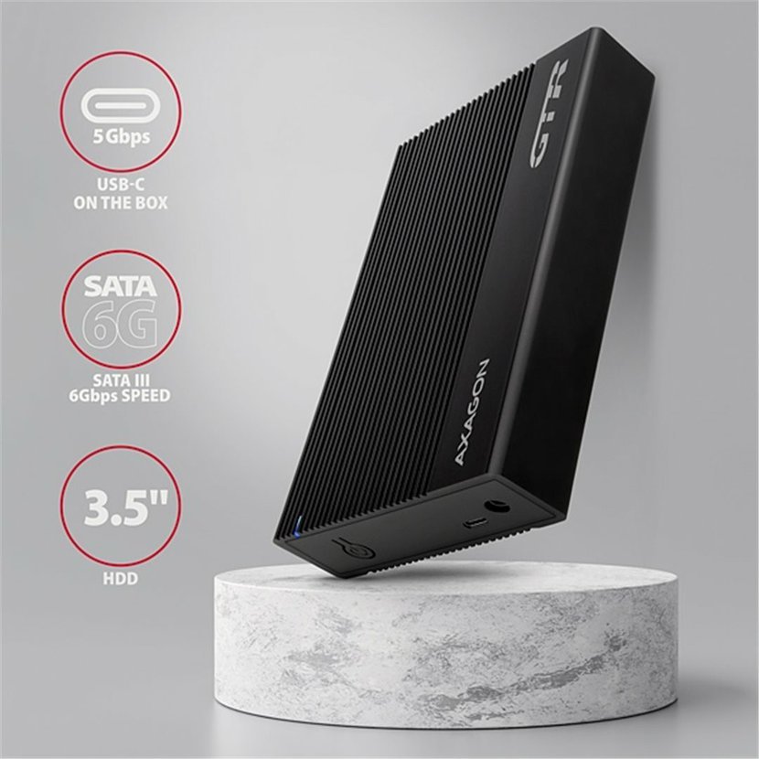 AXAGON EE35-GTR - USB-C 5Gbps - SATA 6G 3.5" RIBBED box, černý