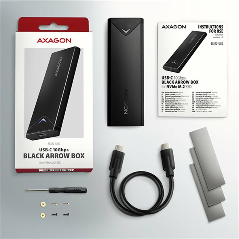 AXAGON EEM2-UB2 - USB-C 10Gbps - M.2 NVMe SSD ARROW box, černý