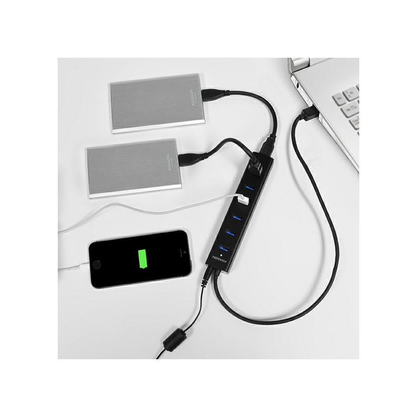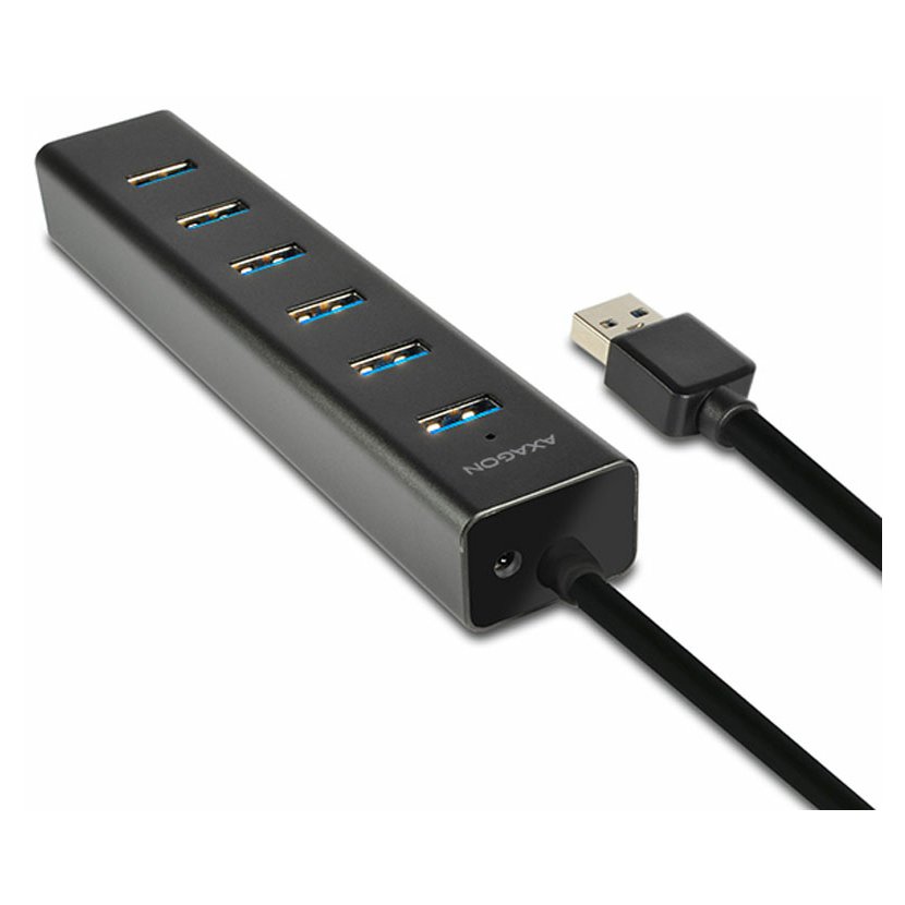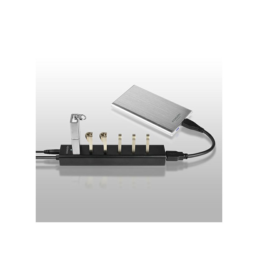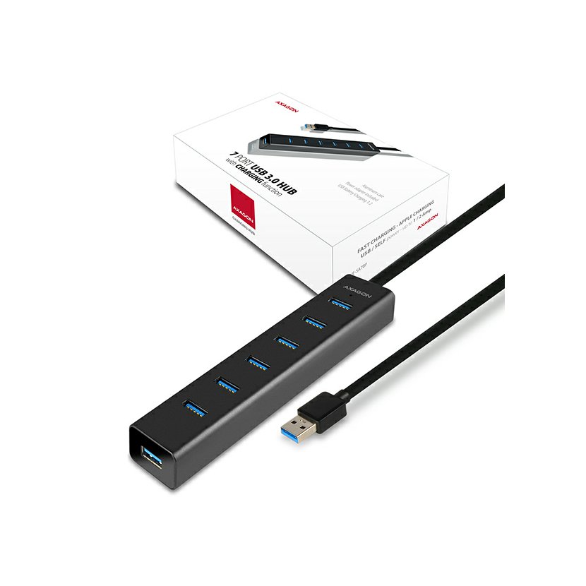 AXAGON HUE-SA7BP - 7x USB 3.0 ALU CHARGING hub, vč. AC adaptéru, kabel USB-A 40cm