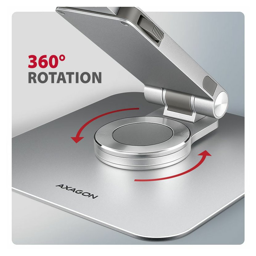 AXAGON STND-LR - hliníkový HQ stojan pro notebooky 10" - 17", nastavitelná výška a úhel a rotace 360°