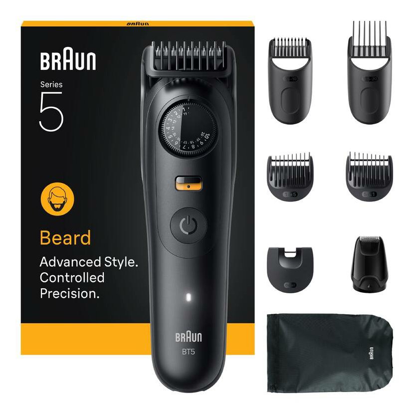 Zastřihovač vousů Braun Series 5 BT5560 posouvá každodenní péči o vzhled na vyšší úroveň, a to díky nejmodernější technologii a preciznímu zpracování. S extrémně ostrými břity zvládne Braun zachytit i ty nejjemnější chloupky a zajistí rovnoměrné zastřižení při každém použití. Výsledkem je dokonale hladké zastřižení a přesné linie, které podtrhnou váš osobní styl. Díky inovativnímu zámku PrecisionLock a jemnému nastavovacímu kolečku PrecisionWheel si můžete vybrat z až 40 různých délek zastřižení v přesných 0,5mm krocích. Tento systém eliminuje chyby a umožňuje naprostou kontrolu nad finálním výsledkem, ať už chcete krátké strniště nebo pečlivě tvarovaný plnovous. Vybaven lithium-iontovou baterií, Braun nabízí až 120 minut bezdrátového provozu po pouhých 1,5 hodinách nabíjení. Pokud spěcháte, rychlé dobití vás během pár minut zachrání na jedno kompletní zastřižení. Plně voděodolný design vám umožní zastřihovač jednoduše opláchnout pod tekoucí vodou, což výrazně usnadňuje čištění a zvyšuje hygienu při každodenním použití. Součástí balení je celkem šest nástavců: pět hřebenových nástavců a jeden precizní nástavec, které umožní tvarování, konturování i detailní úpravy podle vašich představ. Praktické cestovní pouzdro chrání váš zastřihovač při cestování a čisticí kartáček pomáhá udržet zařízení v perfektním stavu.