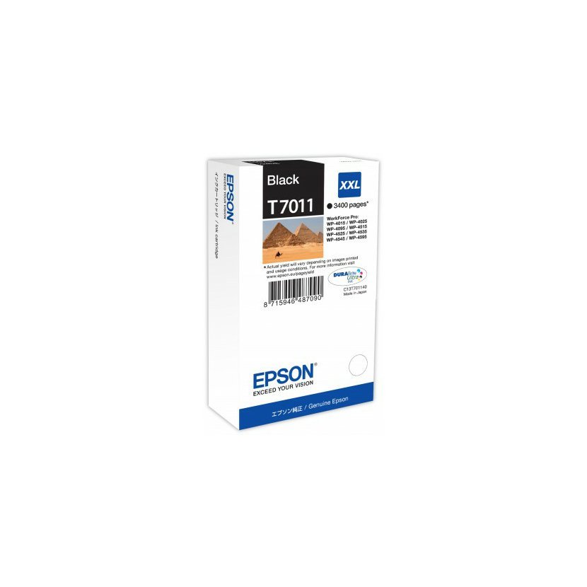 T7011 - EPSON ink Epson DURABrite™ Ultra Black XXL pro EPSON WorkForce Pro WP-4015DN, WorkForce Pro WP-4095DN, WorkForce Pro WP-4025DW, WorkForce Pro WP-4515DN, WorkForce Pro WP-4959DNF, WorkForce Pro WP-4525DNF, WorkForce Pro WP-4535DWF, WorkForce Pro WP-4545DTWF.
