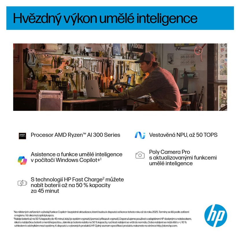 - Procesor: AMD Ryzen™ AI 5 340 s integrovanou NPU pro akceleraci úloh umělé inteligence a funkce Copilot+ PC.