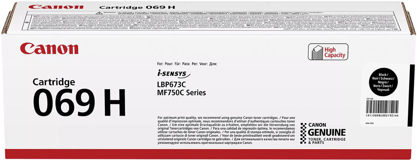 Originální černá tonerová kazeta Canon CRG-069H Bk s uváděnou výtěžností až 7.600 stran A4.