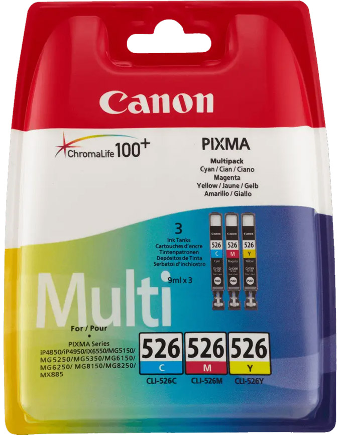 CANON CLI-526 Multipack - Inkoustový zásobník - C,M,Y - žlutá, azurová, purpurová - originál
