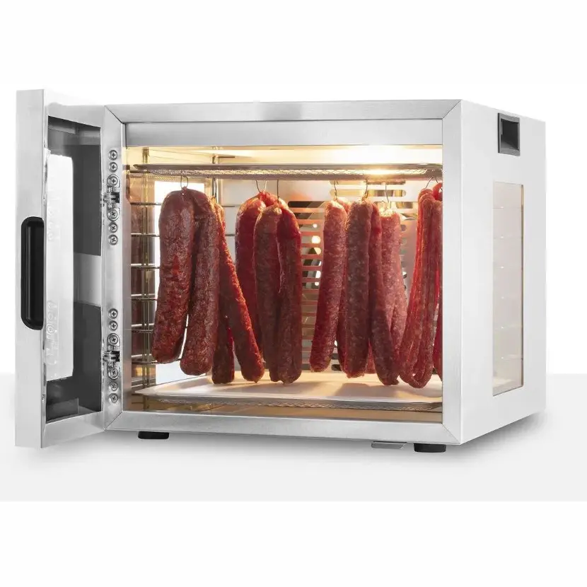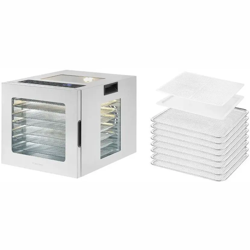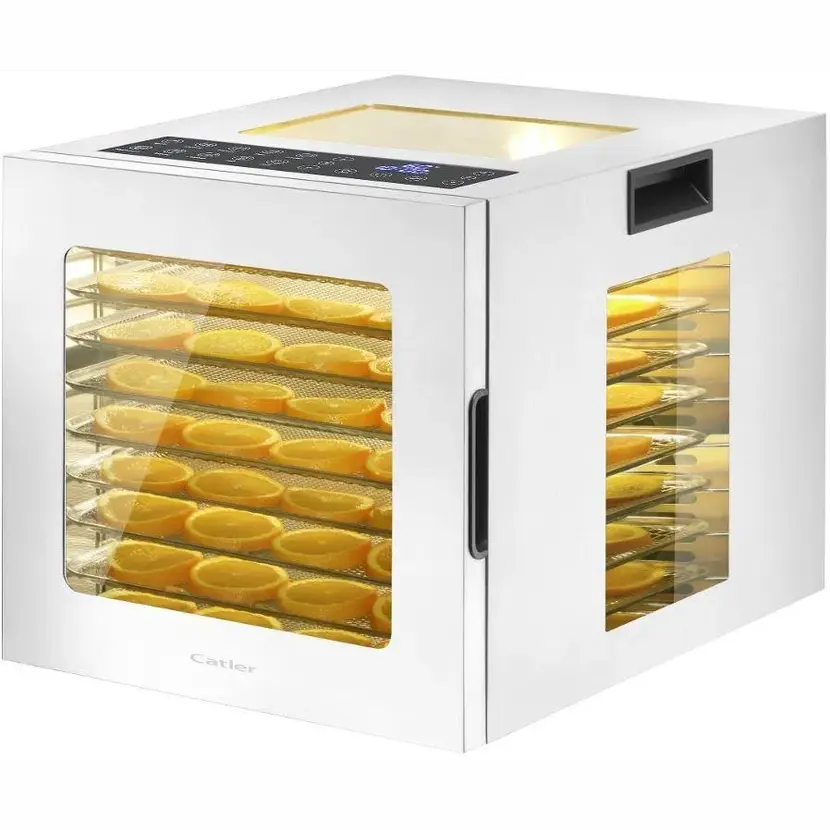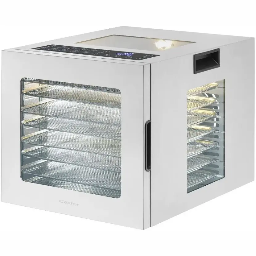 Dnes je sušení potravin jedním z nejvíce vyhledávaných způsobů udržení jejich kvality. Pokud je pro vás sušení potravin stále neznámým konceptem, zvažte veškeré aspekty, protože dlouhodobé skladování úrody je klíčovou výhodou. Sušička ovoce CATLER se hodí na sušení masa, ovoce, zeleniny, hub, bylinek, čaje. Je vybavena celkem 8 platy s nastavitelnou výškou a vymodelovanými průduchy. Díky horizontálnímu proudění vzduchu v sušičce budou všechny potraviny sušeny rovnoměrně. Vzduch proudí přímo přes všechna plata, což zajišťuje, že všechny části jsou vystaveny stejnému množství tepla a vzduchu. K jejímu zhotovení výrobce použil kvalitní materiál, jakým je nerez.