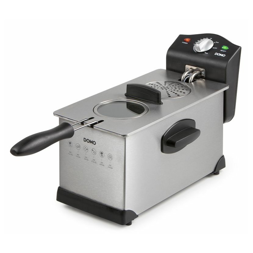 Fritéza nerezová - DOMO DO462FR / 3l •Dvojité vnější stěny zabraňují nebezpečí popálení dotykem. •Objem 3l •Praktické odizolované rukojeti •Nerezové víko se skleněným průhledem •Plně rozebiratelná fritéza pro snadné čištění •Vyjmutelná fritovací nádoba pro snad mytí •Nastavitelný termostat včetně kontrolek nahřátí •Nastavení teploty 60oC až 190oC Rozměry balení (š x h x v): 43,5 x 25 x 28 cm Hmotnost: 3,038 kg Příkon: 2000 W