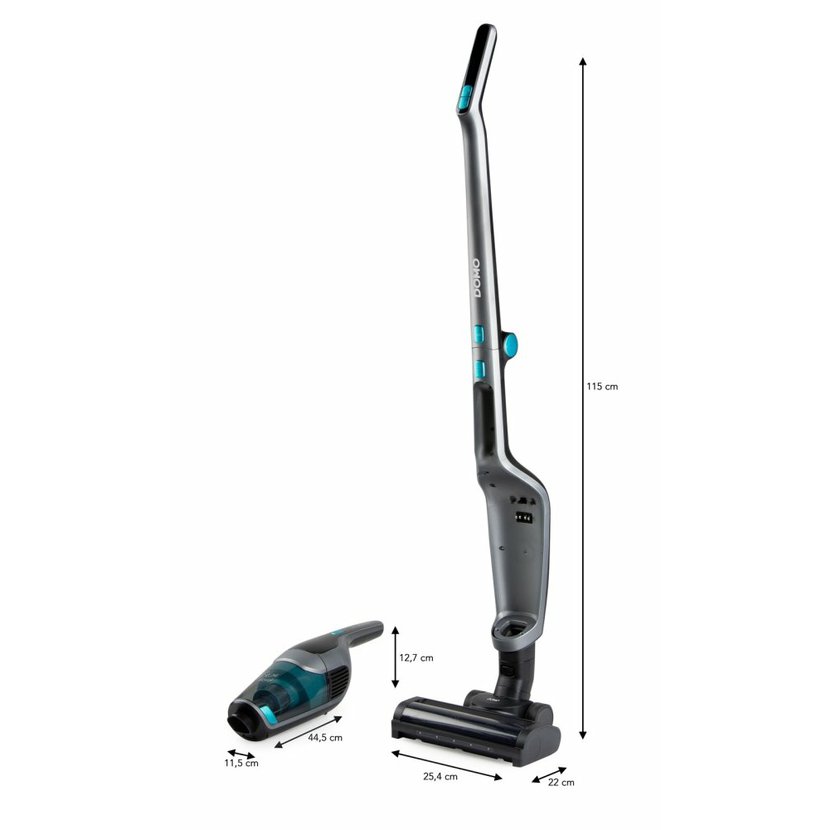 Akumulátorový vysavač DOMO 2v1 DO249SV je výkonný akumulátorový vysavač, který kombinuje tyčový vysavač s odnímatelnou ruční jednotkou. Je vybaven manévrovací podlahovou hubicí s LED osvětlením.