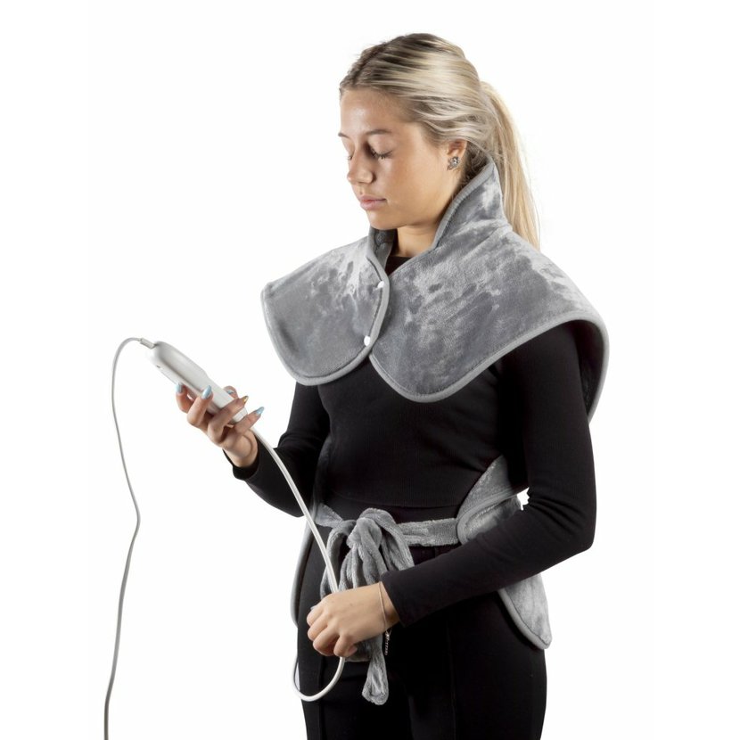 Elektrická vyhřívaná dečka uzpůsobená pro nahřívání a uvolnění svalů zad, ramen a krku. Intenzivní suché teplo pomáhá uvolnit bolest a stimuluje krevní oběh. Dečku lze pomocí knoflíků zapnout kolem krku a zavázat páskem kolem pasu, aby dečka celým svým povrchem dobře přilnula k tělu.