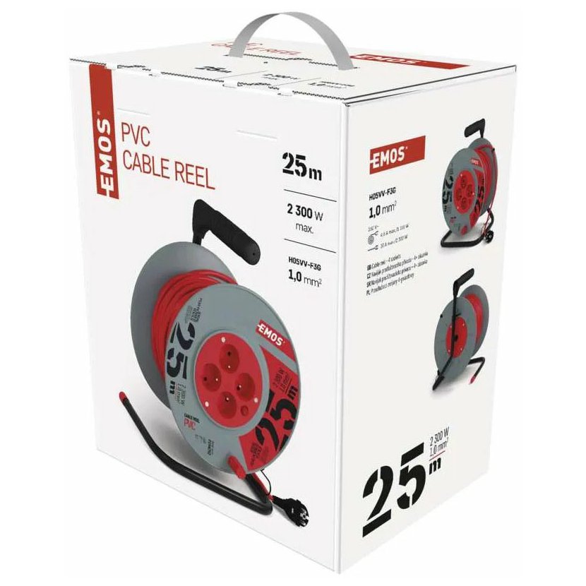 EMOS P194252 - Prodlužovací kabel na bubnu 25m, 4 zásuvky, červený, PVC, 230V, 1 mm2