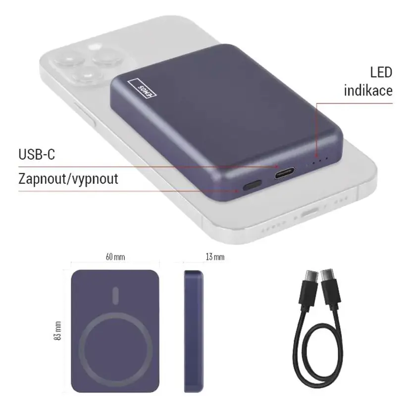 - Kapacita 5 000 mAh – ideální pro nabití mobilních zařízení na cestách