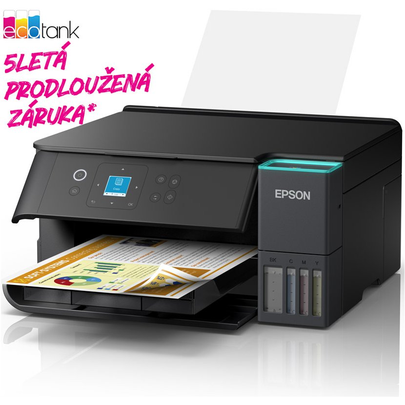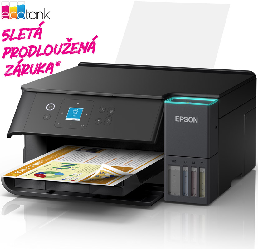 Ušetřete až 95 % nákladů na tisk* s tiskárnami EcoTank od společnosti Epson bez inkoustových kazet. Integrované inkoustové nádržky se snadno doplňují díky speciálně navrženým velkoobjemovým lahvičkám s inkoustem. Bez nutnosti výměny inkoustových kazet a s flexibilními funkcemi připojení je to dokonalá tiskárna pro každého, kdo hledá vysoce kvalitní výtisky za neuvěřitelně nízké náklady na tisk jedné strany.