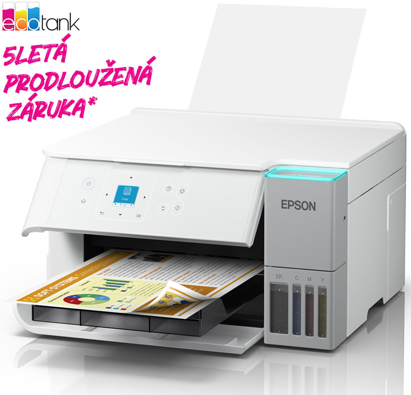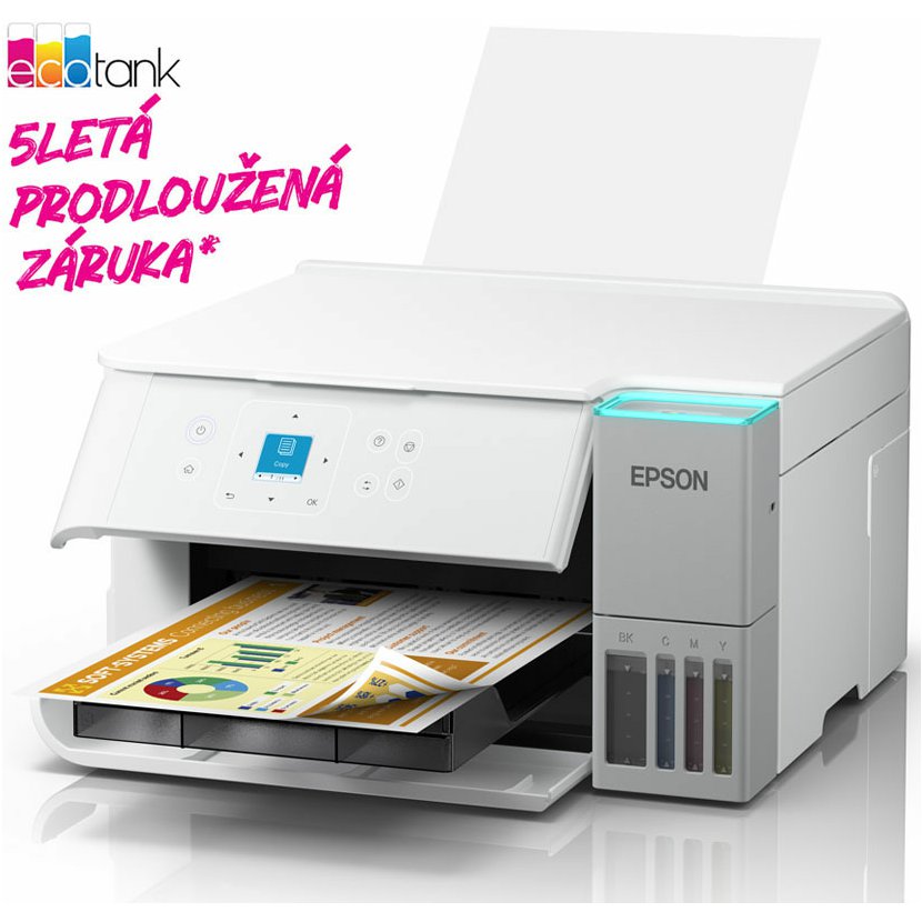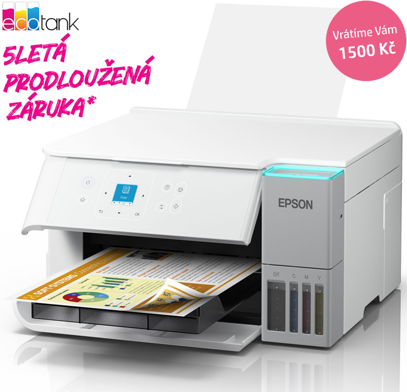 Ušetřete až 95 % nákladů na tisk* s tiskárnami EcoTank od společnosti Epson bez inkoustových kazet. Integrované inkoustové nádržky se snadno doplňují díky speciálně navrženým velkoobjemovým lahvičkám s inkoustem. Bez nutnosti výměny inkoustových kazet a s flexibilními funkcemi připojení je to dokonalá tiskárna pro každého, kdo hledá vysoce kvalitní výtisky za neuvěřitelně nízké náklady na tisk jedné strany.