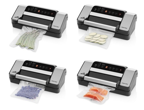 automatická vakuovačka • příkon 120 W • hlučnost 85 dB • funkce vakuování a svařování • režim pro suché a vlhké potraviny • dvě intenzity síly vakuování • funkce pro marinování • LED displej • světelná signalizace provozu • vakuovací box o objemu 1 000 ml • vakuovací sáčky pro opakované použití • bezpečnostní pojistka • 1m přívodní kabel