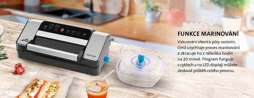 Pro přípravu dokonale ochucených pokrmů pak přijde vhod speciálně vyvinutá funkce marinování potravin ve vakuovém boxu. Podtlak vytvářený vakuováním otevírá póry surovin, což značně urychluje prolnutí marinády s potravinou, místo několika hodin tak postačí pouhých 20 minut.