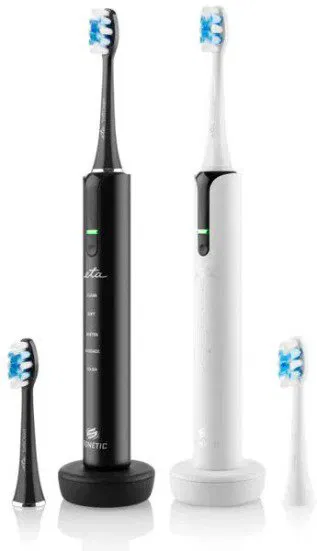 Perfektně vyčištěné zuby bez nutnosti opustit pohodlí domova zabezpečí sonický elektrický zubní kartáček ETA. S tímto parťákem se vám budou zuby čistit jedna báseň, stačí jej lehce přiložit. Díky rychlosti 40000 pohybů za minutu odstraní i nejmenší nečistoty a vy všechny oslníte o poznání bělejším úsměvem. Jemná kartáčková vlákna detailně vyčistí obtížně přístupné prostory mezi zuby efektivněji než obyčejný kartáček. Elektrický kartáček ETA má 5 režimů čistění zubů. Elektrický kartáček na zuby ETA za vás bude hlídat doporučenou dobu čistění.