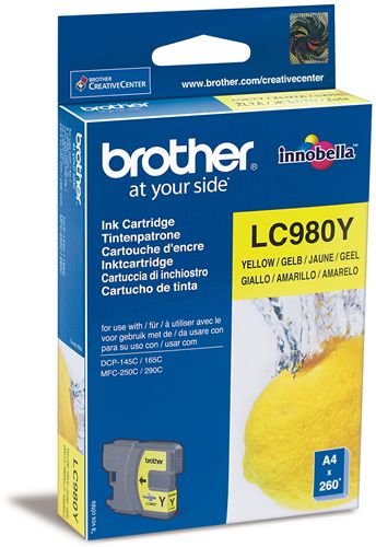 LC980Y - BROTHER ink cartridge pro DCP-165, 365, 375, MFC-295, žlutý, originál s uváděnou výtěžností až 260 stran A4 při 5% pokrytí.