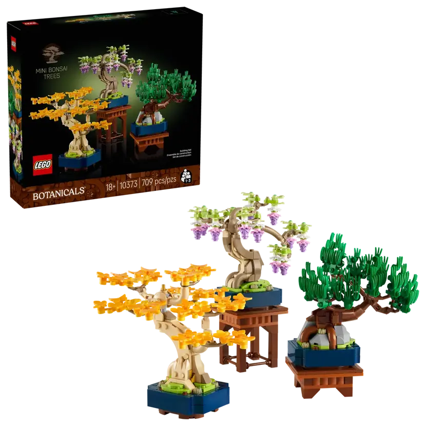 - Sada bonsajů – Postavte si se stavebnicí LEGO® Botanicals Miniaturní bonsaje pro dospělé hned 3 miniaturní stromy, které symbolizují klid a rovnováhu, a vychutnejte si pohlcující stavitelský projekt