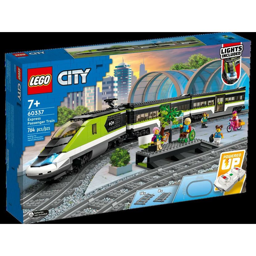 Stavebnice LEGO® City Expresní vláček (60337) obsahuje dálkově ovladatelnou lokomotivu s technologií LEGO Powered Up a funkčními světlomety, jídelní a osobní vůz, nástupiště, 24 dílů kolejí a 6 minifigurek, se kterými se mohou milovníci vláčků těšit na nespočet dobrodružství na železnici.