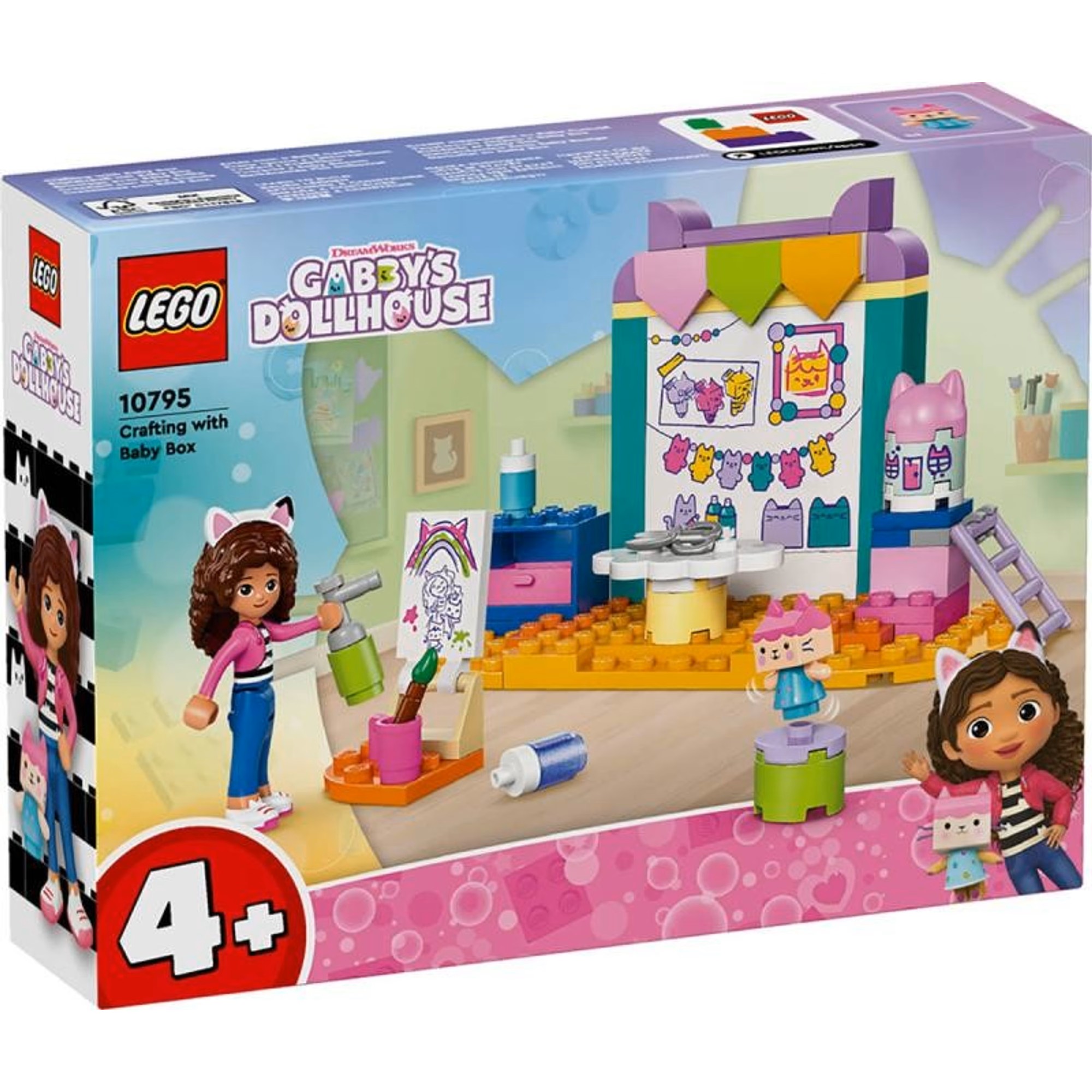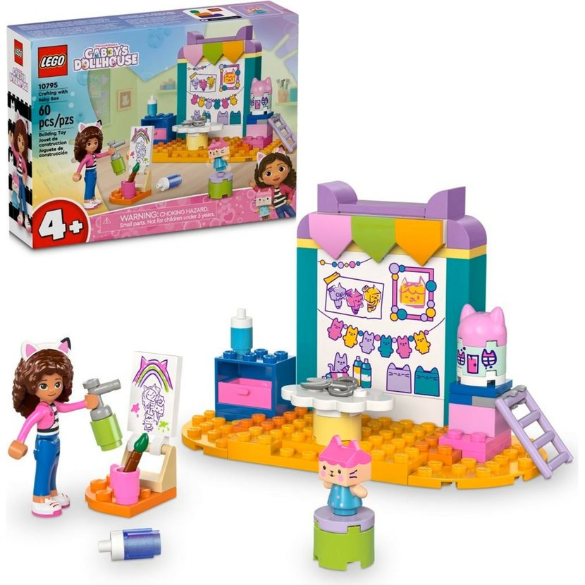 Tato hračka LEGO pro kluky a holky je zároveň tvořivou stavebnicí. Součástí kreativního modelu je štětec, bar vy, nůžky a sprej, minipanenka Gábi a figurka Krabičky. Gábi a Krabička spolu namalují obrázek a postaví model Gábinina kouzelného domku pro panenky. Nechybí ani žebřík, který postavičkám pomůže dostat se na vrchol modelu. Stavebnice má zeď pokrytou kresbami a nahoře vyčnívají kočičí uši. Model je plná poutavých detailů, které děti inspirují ke kreativnímu hraní, a součástí je začátečnická kostka, která dětem pomůže pustit se do stavění. K dispozici je intuitivní návod na stavění v podobě pestrobarevné ilustrované příručky.