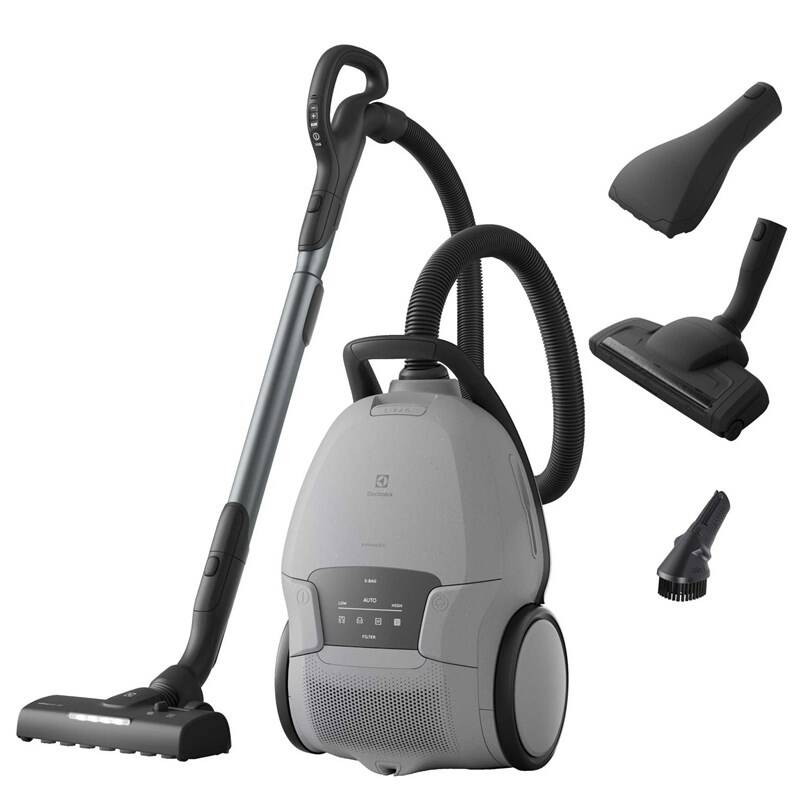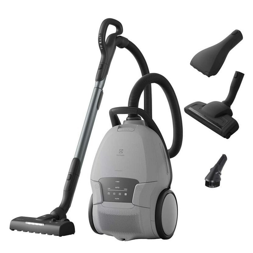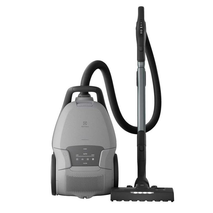 Sáčkový vysavač Electrolux EB81A3UG 800 Animal zaujme nejen vysokou účinností, ale i provedením v decentní šedé barvě. Zároveň potěší skutečnost, že až 48 % přístroje je vyrobeno z recyklovaného plastu. Součástí vysavače je univerzální hubice s LED osvětlením, příslušenství 3 v 1 a vzduchový turbokartáč. Univerzální hubice je vybavená gumovými trojúhelníky a měkkým kartáčem. Díky LED osvětlení neminete žádný drobeček. Příslušenství 3 v 1 obsahuje hubici na odstraňování prachu z těžko dostupných povrchů, hubici na textilie a štěrbinovou hubici pro úzká místa. Turbokartáč účinně vysaje prach i zvířecí chlupy.