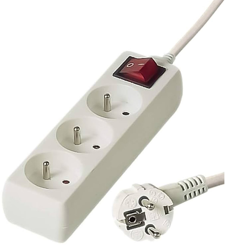 Praktický prodlužovací kabel se 3 zásuvkami. Na kabelu naleznete také centrální vypínač pro snadné a rychlé odpojení spotřebičů od elektrické sítě.