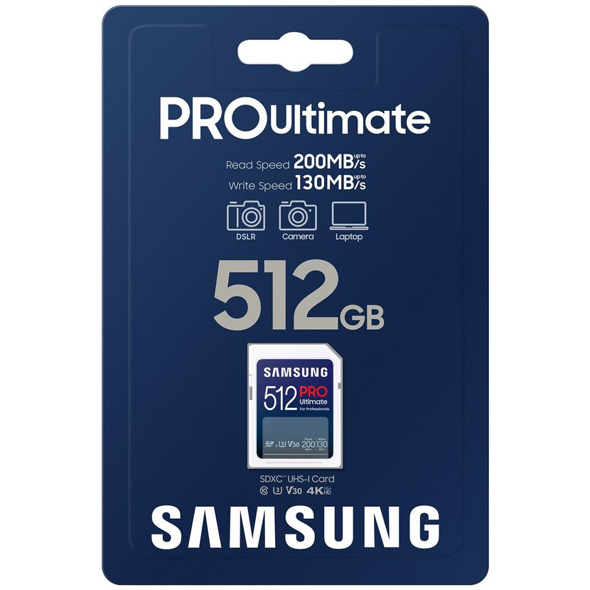 SAMSUNG Pro Ultimate 512GB SDXC Card, UHS-II, U3, V30, Class 10 (200R/130W) - MB-SY512S/WW