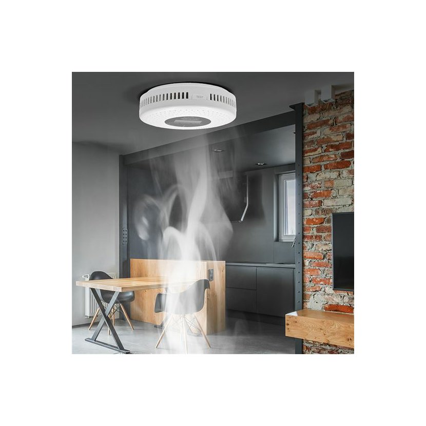 Kombinovaný detektor kouře a oxidu uhelnatého – maximální bezpečnost. Tento detektor včas upozorní na přítomnost kouře i oxidu uhelnatého díky kombinaci fotoelektrického a elektrochemického senzoru. Nabízí dlouhou životnost, nízkou spotřebu a hlasitý alarm (85 dB) doplněný LCD displejem a světelnou signalizací. Samodiagnostika hlídá správnou funkčnost zařízení. Napájení pomocí 2× AA baterií s upozorněním na jejich slabý stav. Splňuje přísné bezpečnostní normy.
