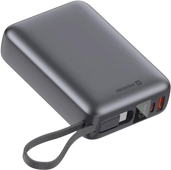 SWISSTEN Powerbanka 20000 mAh 45 W s integrovaným kabelem USB-C, vesmírně stříbrná
