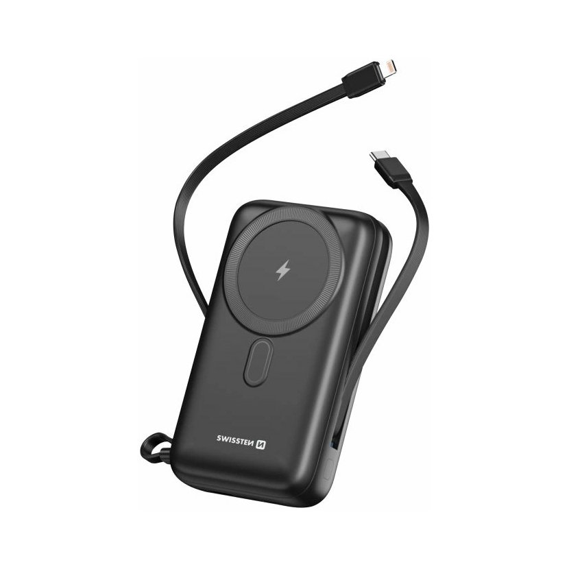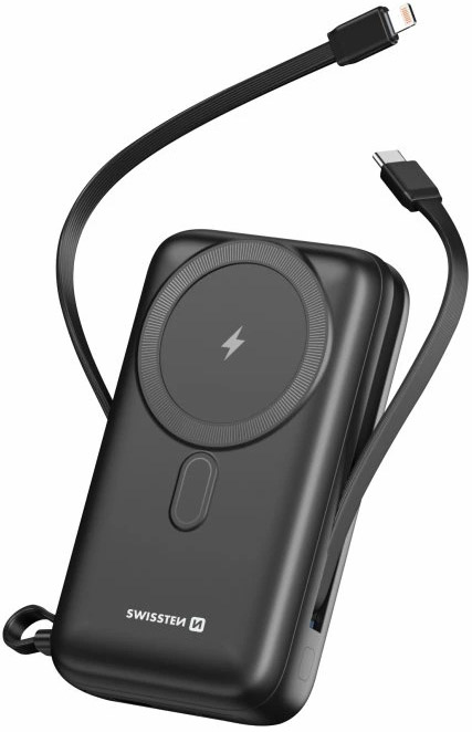 SWISSTEN Powerbanka 20000 mAh PD 20W s integrovanými kabely USB-C a Lightning (kompatibilní s MagSafe)