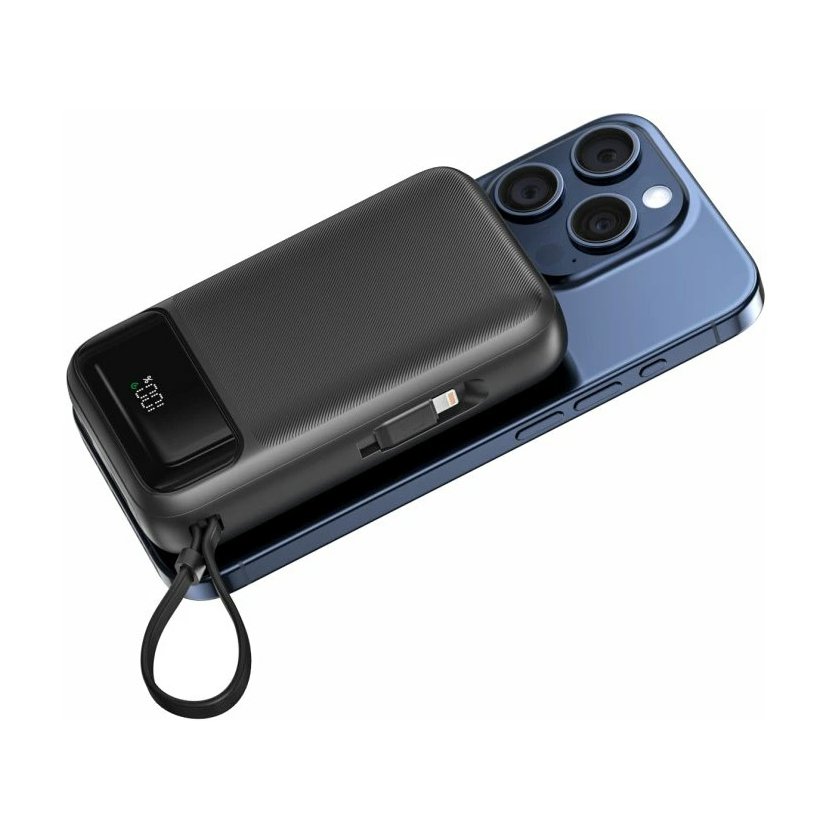 Jelikož má powerbanka integrované kabely s koncovkami USB-C a Lightning již nadále nebudete muset řešit jakékoliv kabely. Powerbanku pomocí USB-C koncovky i nabijete.