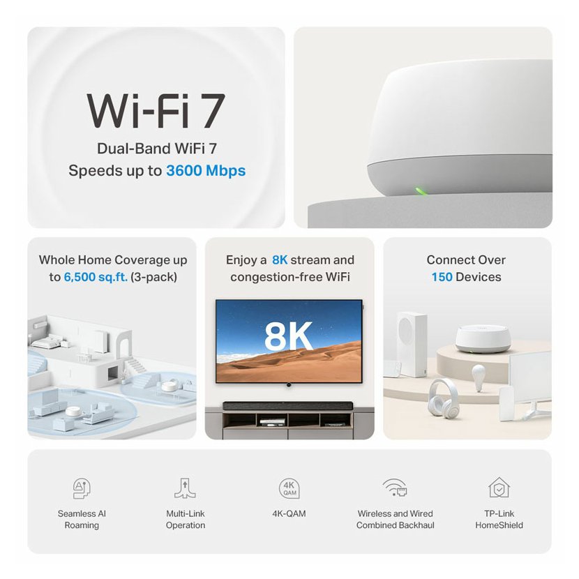 Advanced Features: Multi-Link Operation (MLO) • 160 MHz Channel • 4K-QAM • Multi-RUs • Works with Alexa and Google Assistant