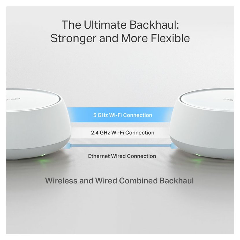 TP-Link Mesh Technology - Optional Ethernet backhaul work together to link Deco units to provide seamless coverage