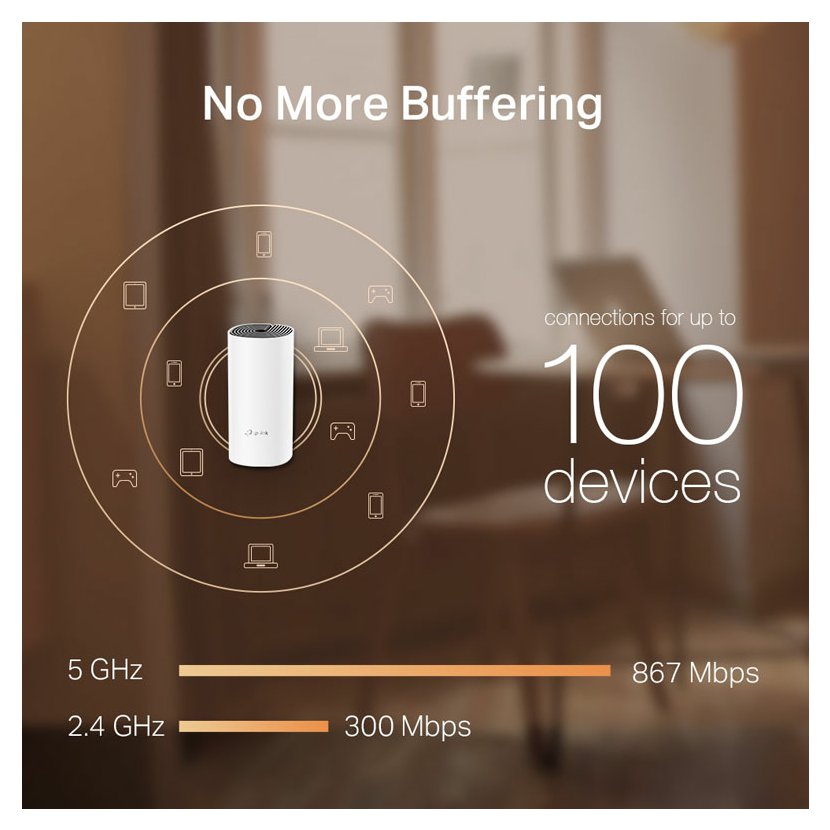 Rychlost sítě je třikrát vyšší než u routerů předchozí generace díky bezdrátové technologii 802.11ac, takže Deco dokáže poskytovat bezproblémové připojení až 100 zařízením.