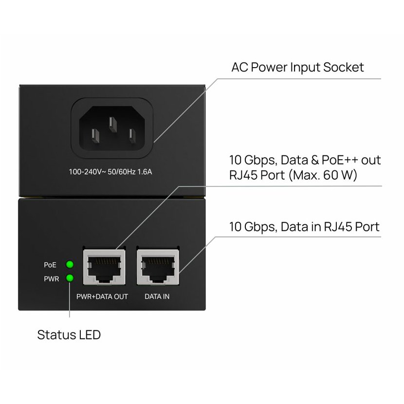 TP-Link PoE370S - Omada 10GB PoE++ 802.3af/atr/bt Injector až 60W