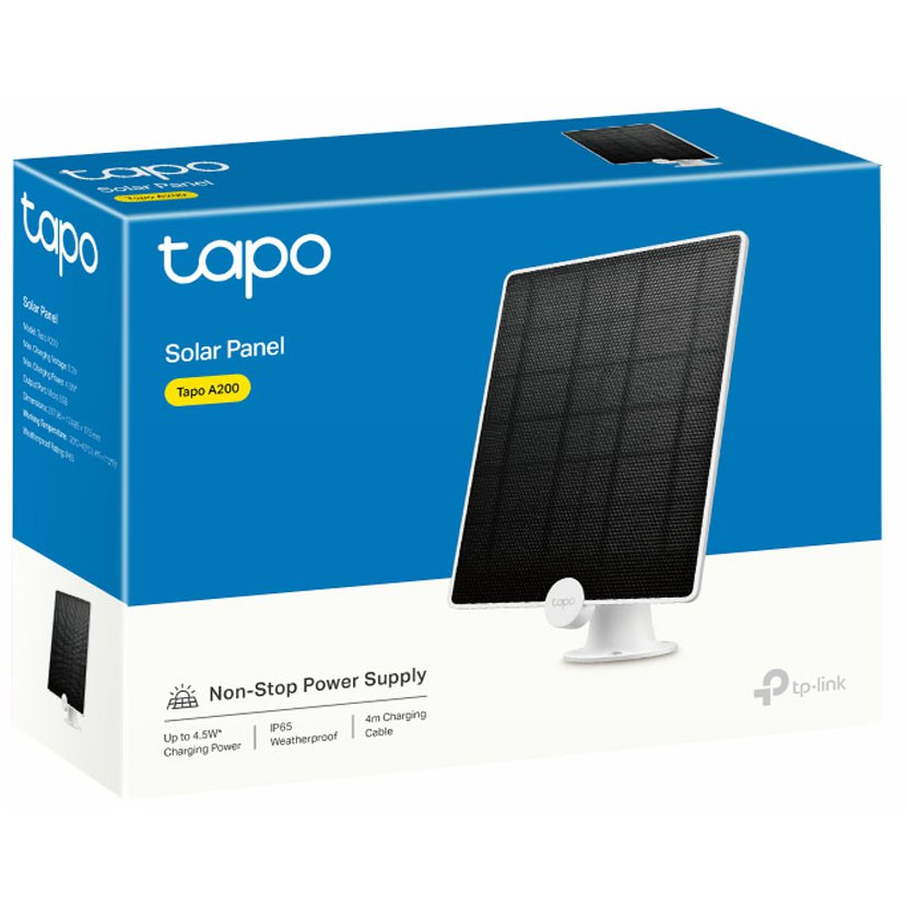 - Nabíjecí výkon až 4,5 W - Vyrobeno z prvotřídních monokrystalických křemíkových článků, Tapo A200 zachycuje vydatnou solární energii a efektivně zajišťuje nepřetržité napájení.
