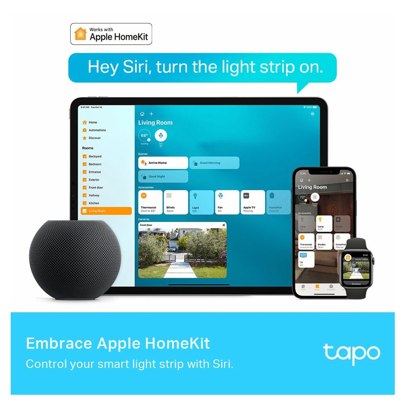 Tento pásek Tapo jako první podporuje funkci Apple HomeKit, takže jej uživatelé mohou ovládat pomocí několika zařízení a jednoduchých hlasových příkazů. Zkuste ovládat svou chytrou domácnost pomocí Siri.