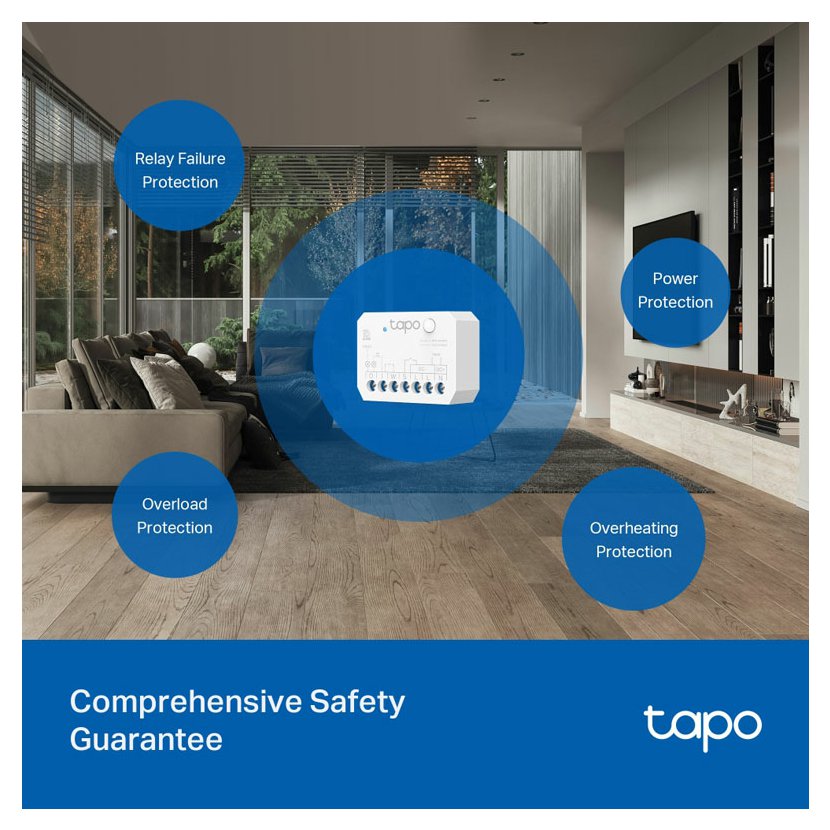 - Ochrana při poruše relé – Porucha relé je automaticky rozpoznána a uživatel je upozorněn prostřednictvím aplikace Tapo.