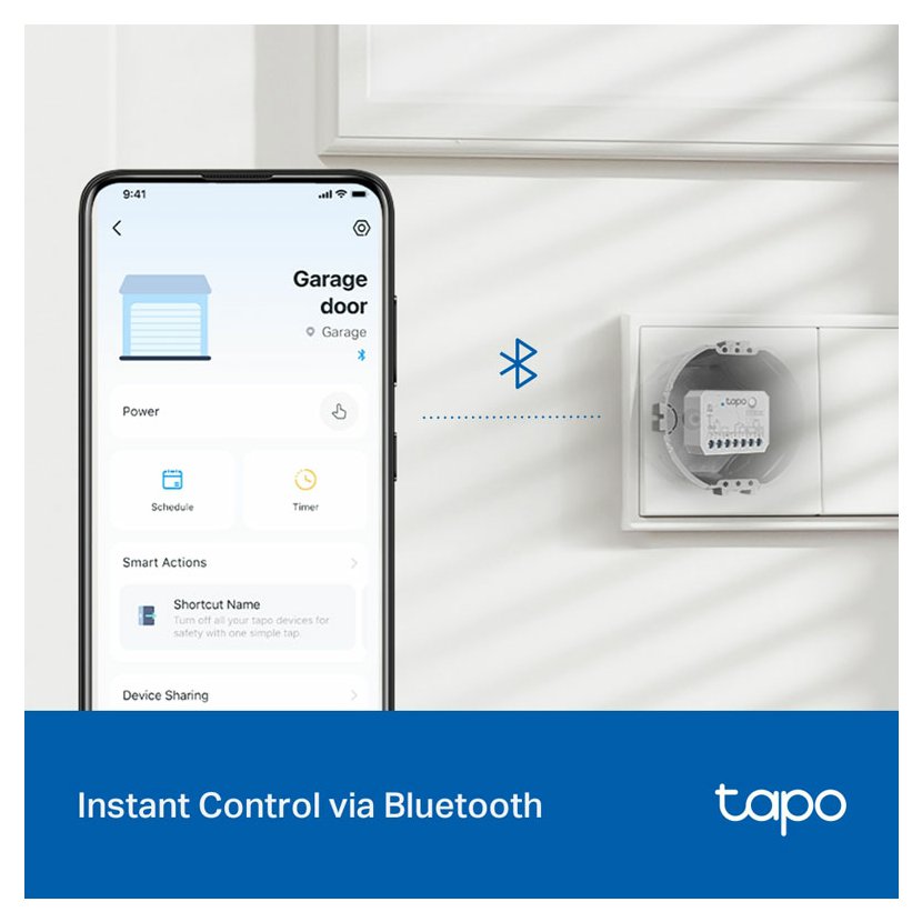 Tapo S110E umožňuje okamžité ovládání přes Bluetooth, enabling normal configuration and secure control via Tapo App even without Wi-Fi. If the router fails or the password is changed, users can directly manage and reconnect offline devices through Tapo App without the need to disassemble the switch.