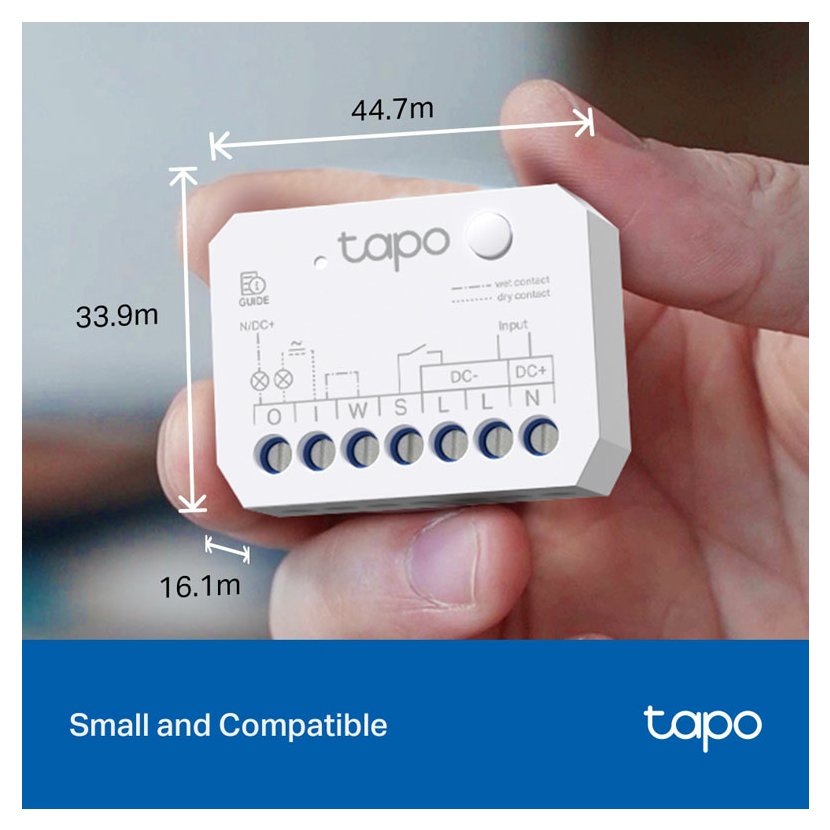 - Malé rozměry – Kompaktní Tapo S110E je navržen pro maximální kompatibilitu; snadno se vejde k osvětlení, za vypínače nebo do nástěnných zásuvek – i do těch nejmenších instalačních krabic EU.