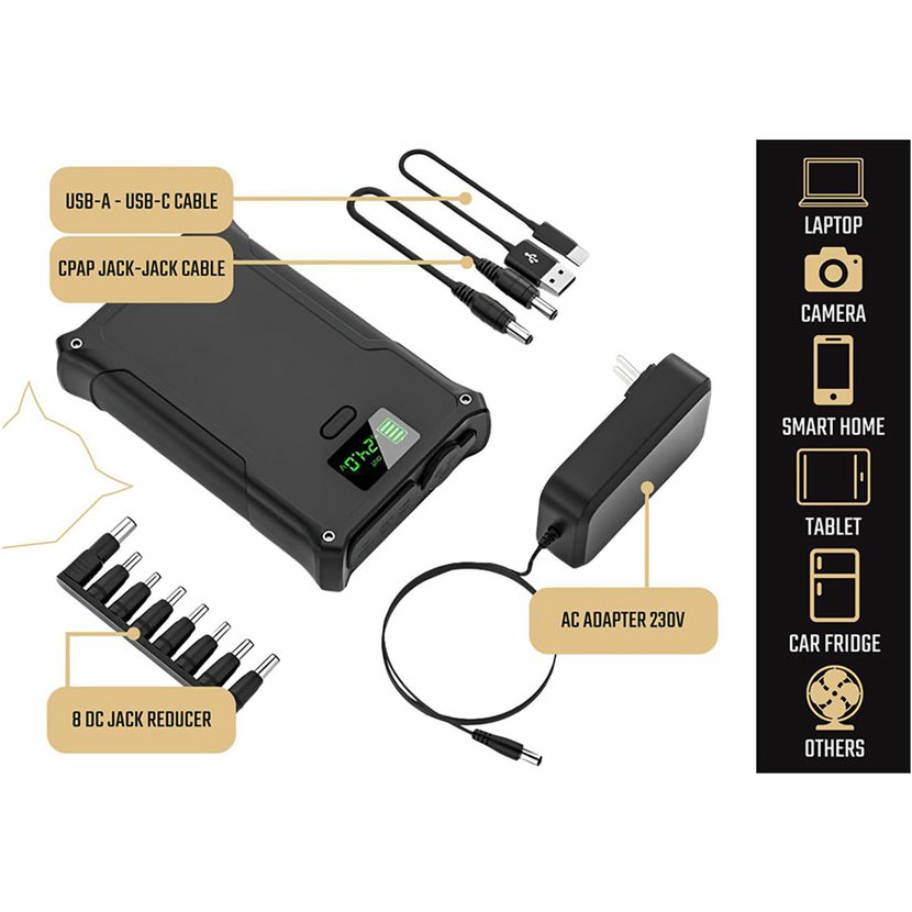 S kapacitou 38400 mAh (138Wh) a maximálním výkonem až 160 W spolehlivě napájí širokou škálu zařízení – od mobilních telefonů přes notebooky až po 12V spotřebiče. Nabízí výstupy USB-A, USB-C, DC-JACK pro notebooky a cigaretovou zásuvku.