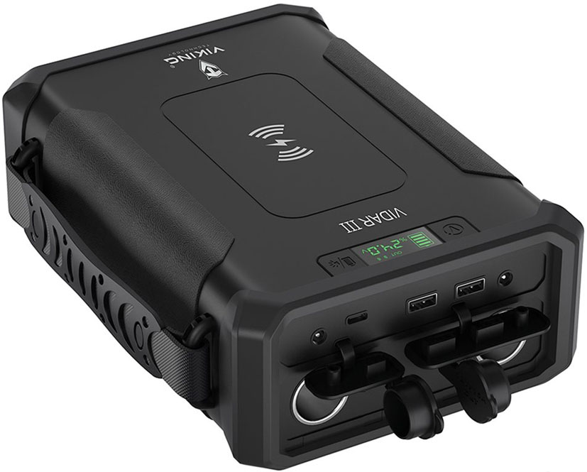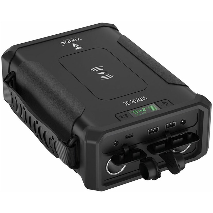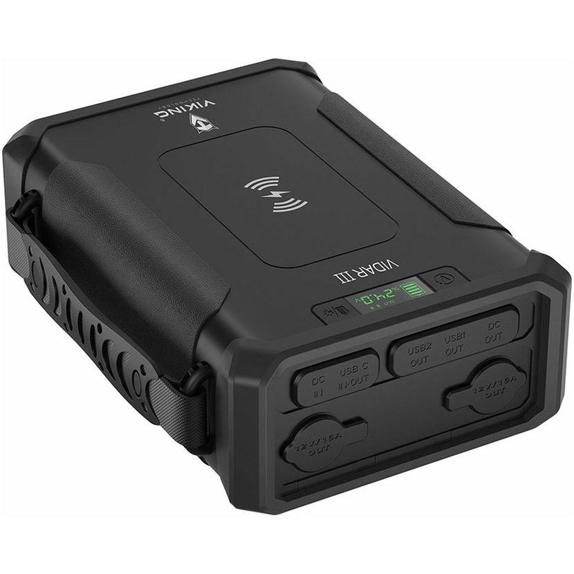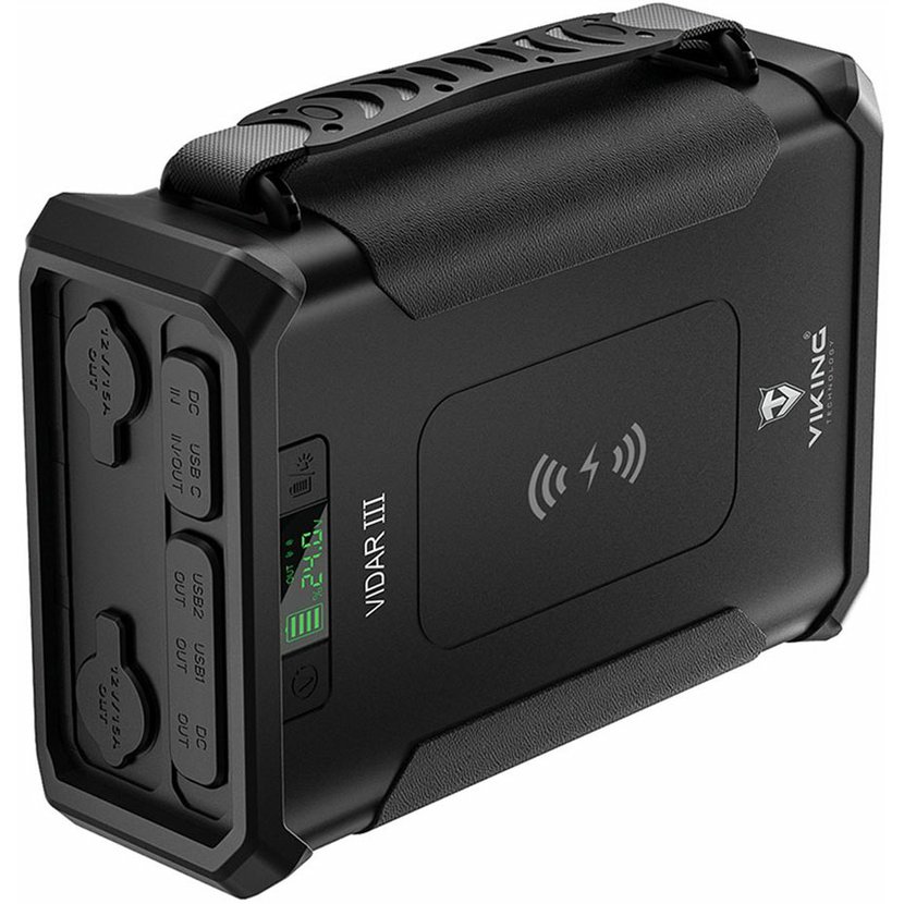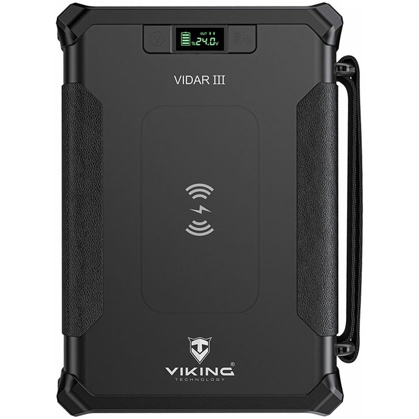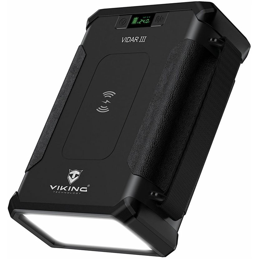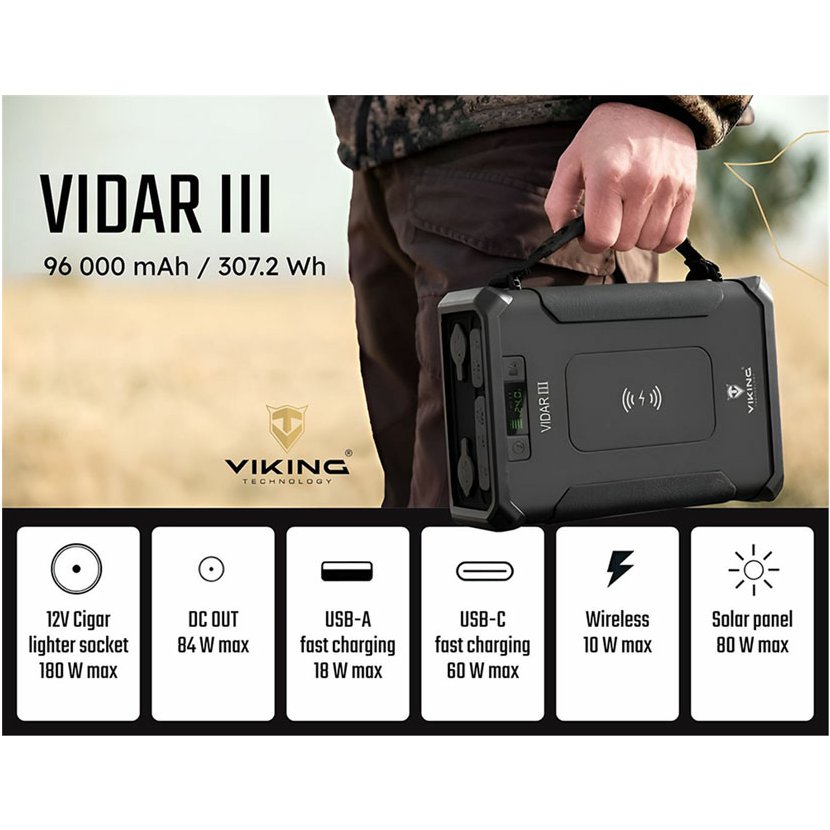 Outdoorová powerbanka Viking VIDAR III • Kapacita: 96000mAh/307.2Wh • Maximální výkon: 180W • Zabudované LED světlo • Široká škála vstupů a výstupů (USB-A, USB-C, Cigaretová zásuvka, DC-jack, Wireless Qi) • Možnost solárního napájení • Funkce Pass-Through • Odolnost IP65