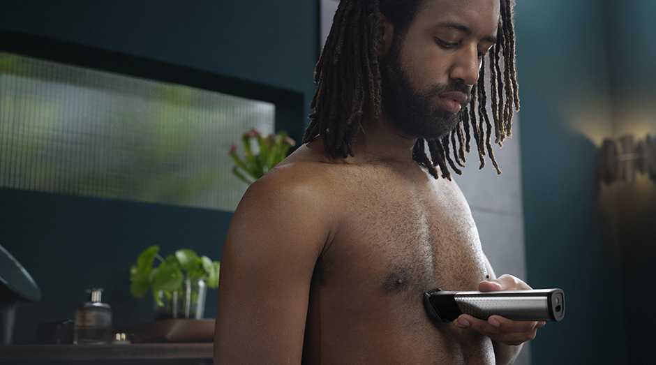 Oblast od krku dolů upravíte přesně tak, jak chcete. V balení najdete 2 hřebeny na tělo (3 a 5 mm) a zastřihovač na tělo, který zastřihuje na 0,5 mm. Díky systému ochrany pokožky se nemusíte bát podráždění či pořezání.
