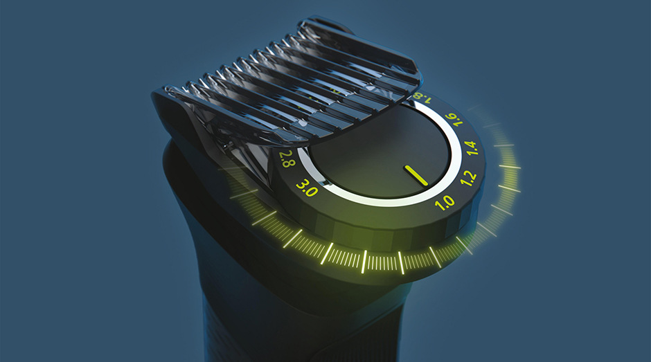 Hřebenový nástavec umožňuje vytvořit precizní rovnoměrné zastřižení podle vašich představ. Nabízí 11 různých nastavení délky v rozmezí 1 až 3 mm a délky lze stupňovat v krocích po 0,2 mm.